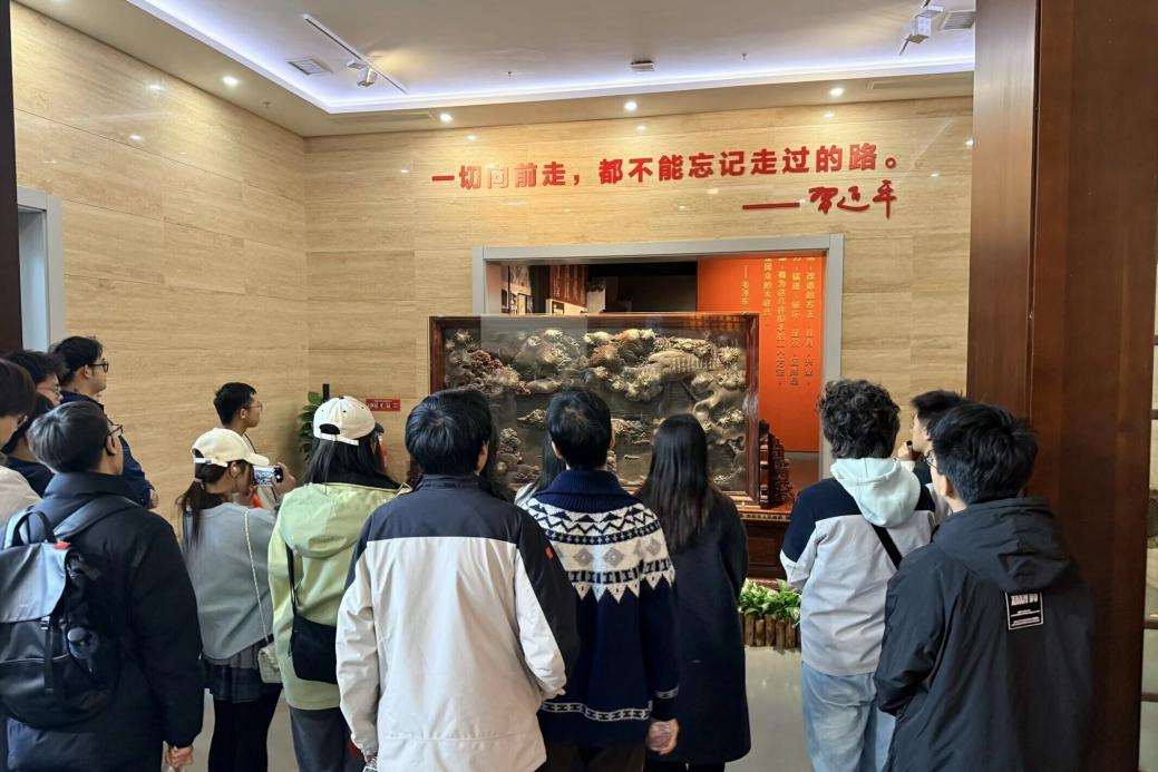 研学队伍首站抵达中国共产党长沙历史馆。在讲解员的引导下,同学们循着“建党先声”到“逐梦前行”的历史脉络,透过珍贵的文物与史料,系统回顾了这座英雄城市的奋斗历史。在毛泽东与杨开慧同志的故居,简朴的陈设将革命先辈艰苦朴素的作风具象化,让同学们接受了一场深刻的精神洗礼,理想信念愈发坚定。