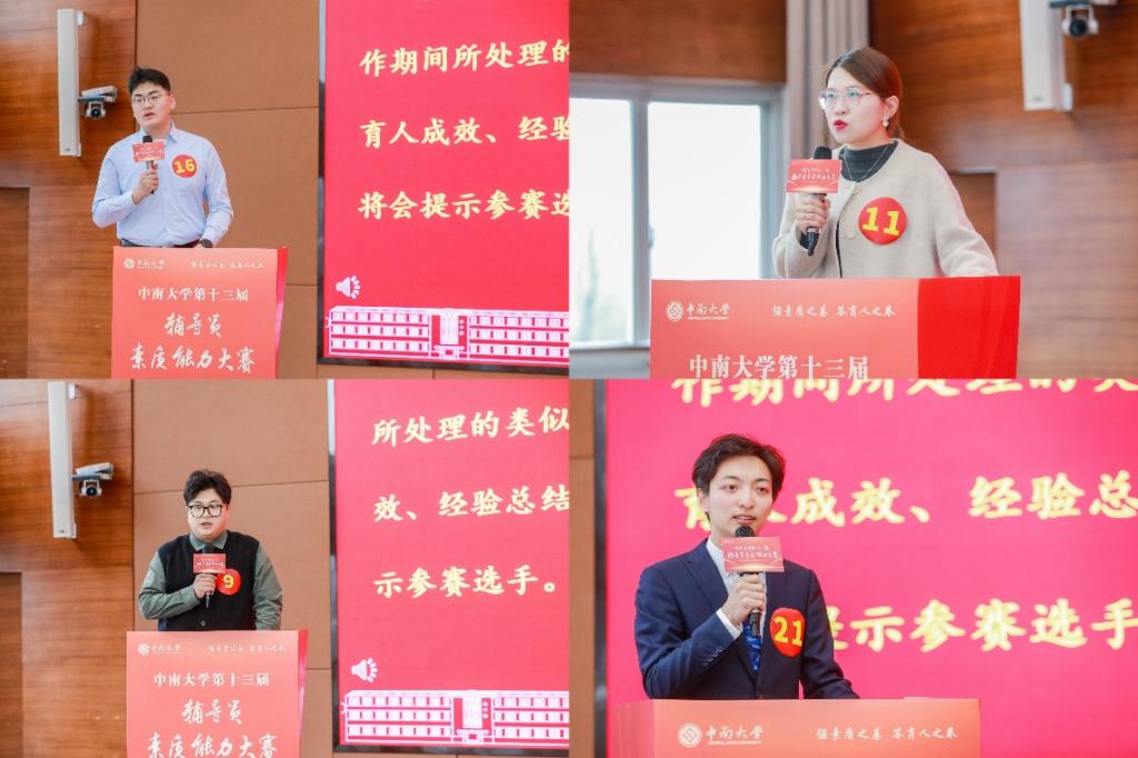 承办的中南大学第十三届辅导员素质能力大赛在潇湘校区举行。聚焦新时代立德树人工程,紧扣新时代高校辅导员职业能力要求,本次比赛分为初赛、决赛两个阶段。