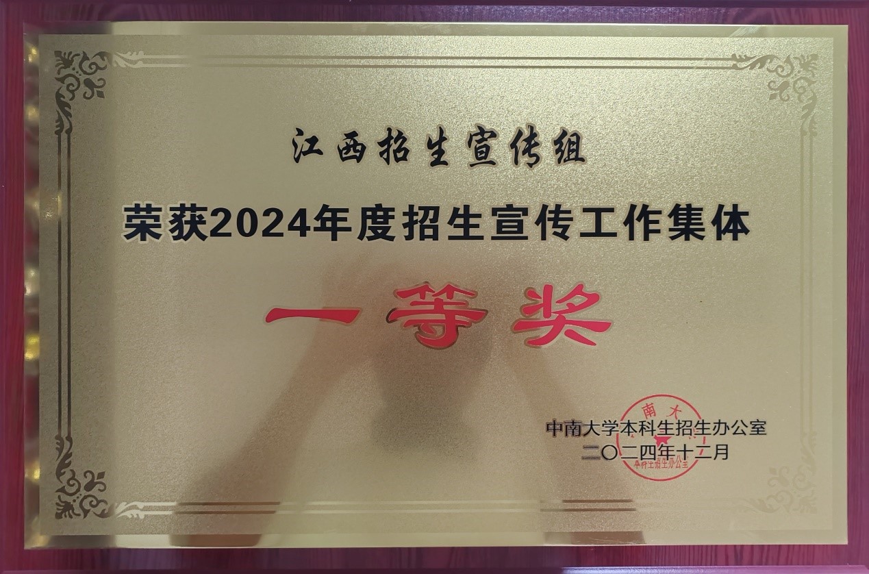 江西招生宣传组荣获2024年度招生宣传工作集体—一等奖