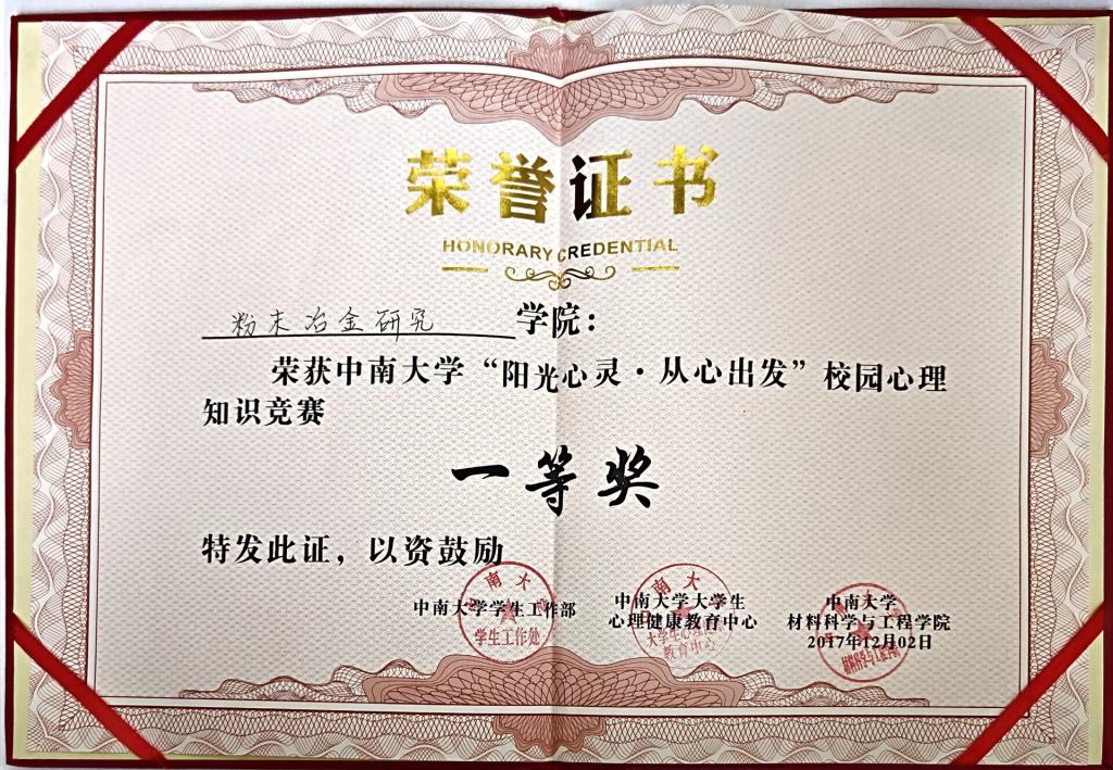 2017年中南大学校园心理知识竞赛--一等奖