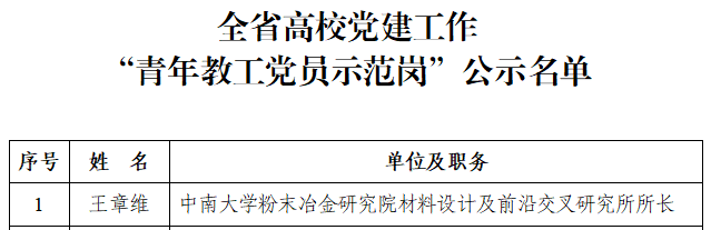经各高校申报推荐,中共湖南省委教育工委组织资格审查、专家评审、评委会评议和工委会审定,全省高校党组织“对标争先”建设计划第四批项目评选结果于日前公示(原文链接://jyt.hunan.gov.cn/jyt/sjyt/xxgk/tzgg/202504/t20250401_1157532.html)。我院青年教师王章维获评第四批全省高校党建工作“青年教工党员示范岗”。