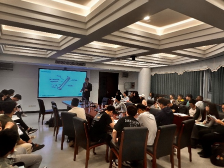 Florian Pyczak教授、 Daria Lazurenko教授与王丽老师、刘超强老师、何骏阳老师以及学生讨论