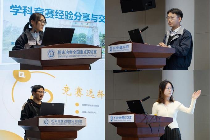 在岳麓山校区三一大楼举办“升华杯”竞赛经验分享会。旨在帮助两院学子深入了解赛事,激发同学们的参赛热情。活动特邀姚弈枫、张倚阁、王巨贤、赵佳颖四位优秀学生代表分享参赛经验。